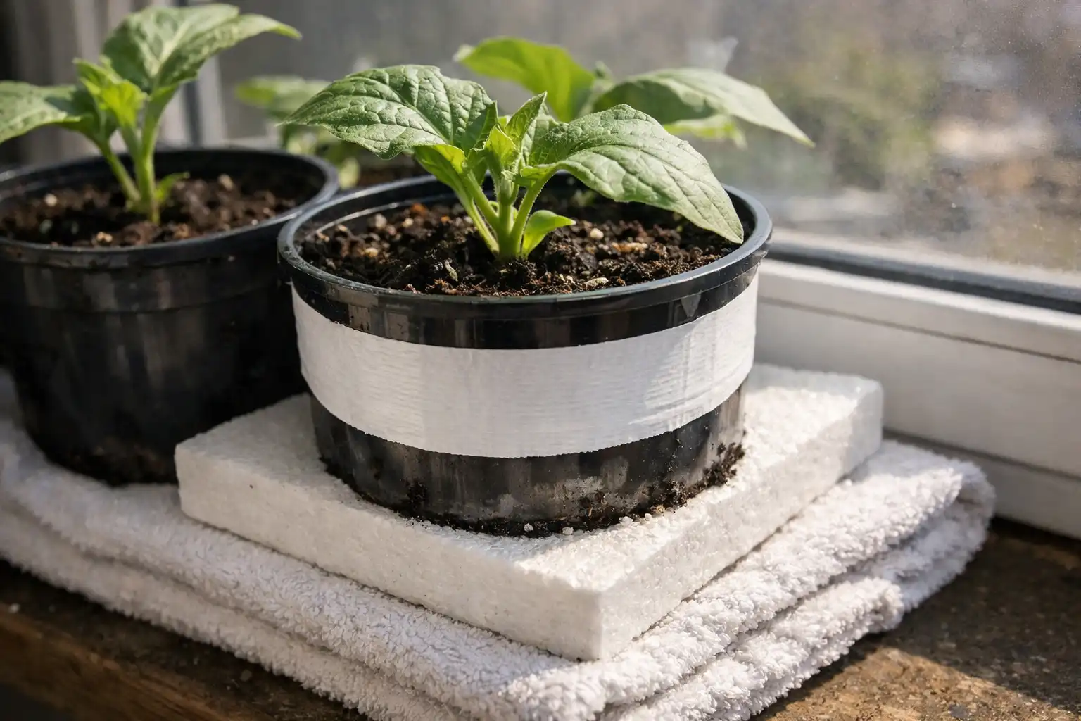 Helyezzen egy habszivacslapot vagy egy összehajtogatott törölközőt az ablakpárkány és a palánták közé.