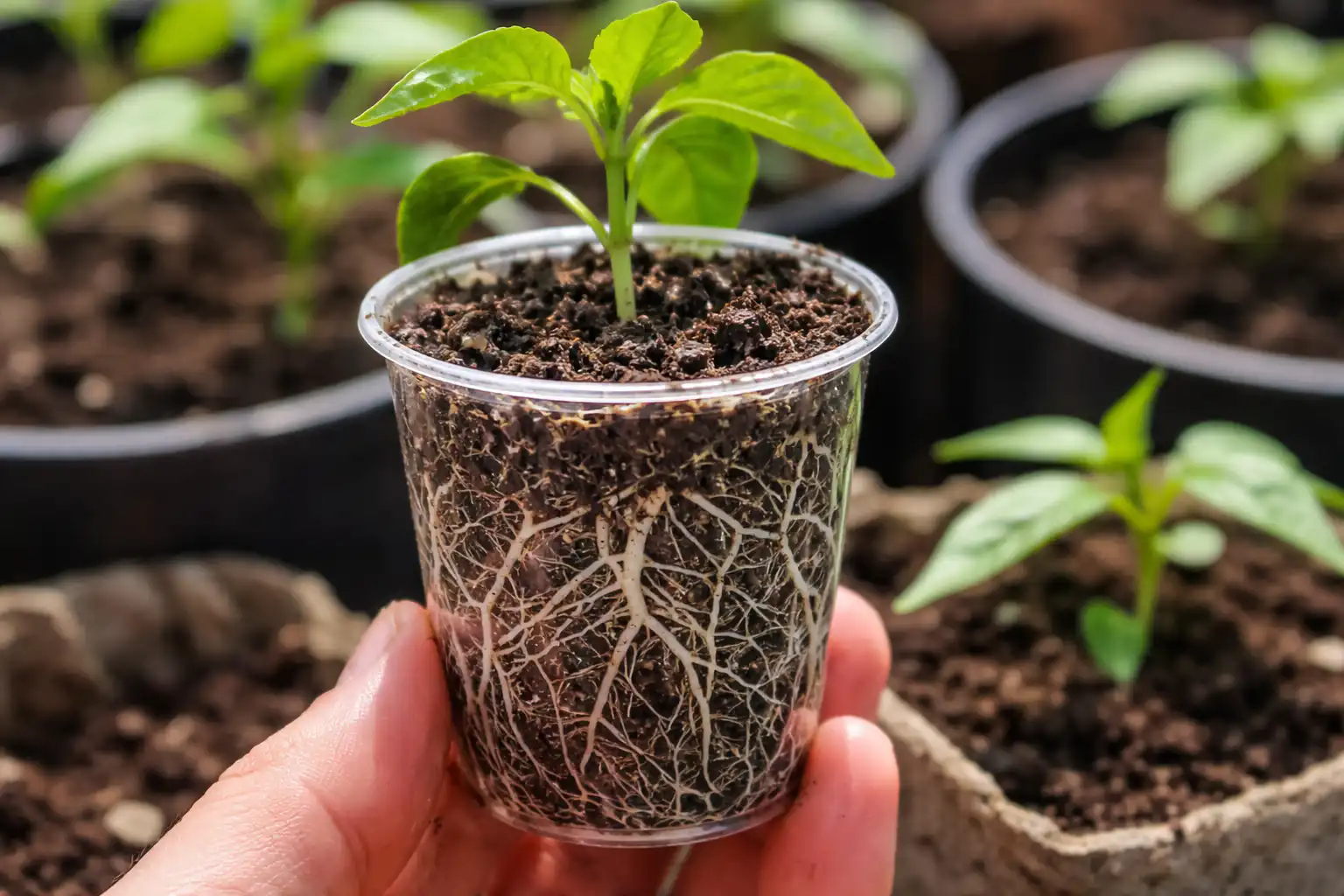 A paprika palánták optimális indítási térfogata 100-180 ml-es csészékben van.