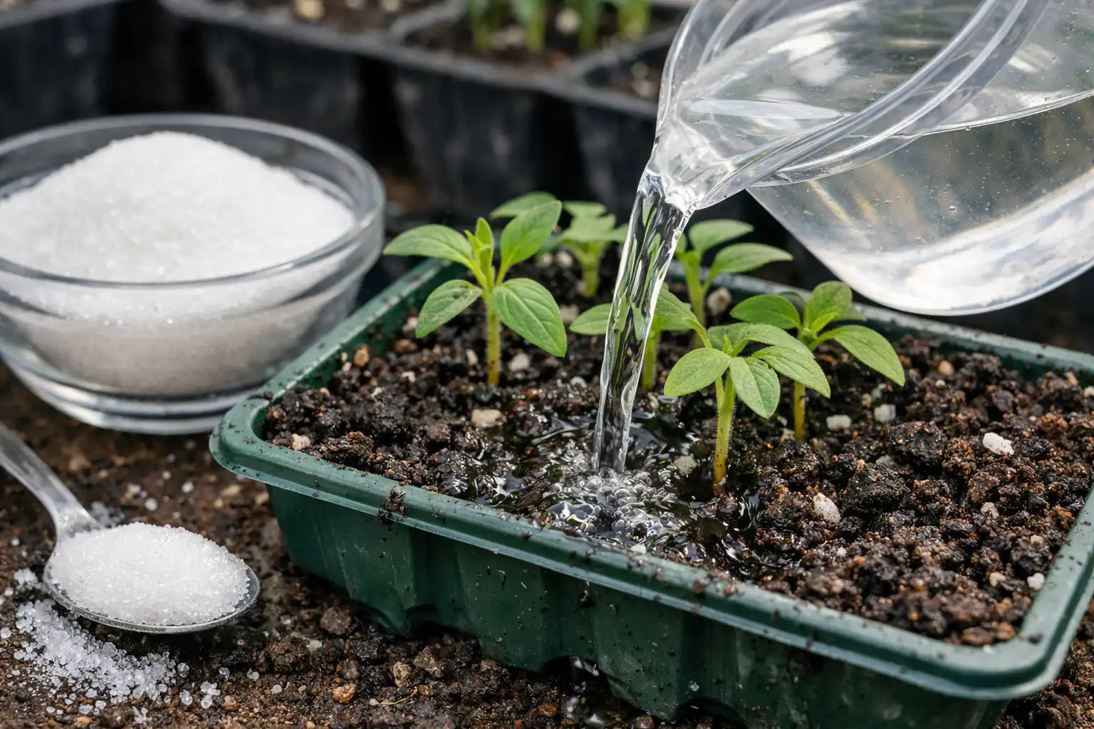 Egy titkos árnyalat: a cukor sokkal hatékonyabban működik, ha egy kis gyógyszertári EM-készítményt vagy közönséges élesztőt adunk az oldathoz. A hasznos baktériumok gyorsabban dolgozzák fel a glükózt a gyökerek számára elérhető formára, megakadályozva a talaj savanyodását.