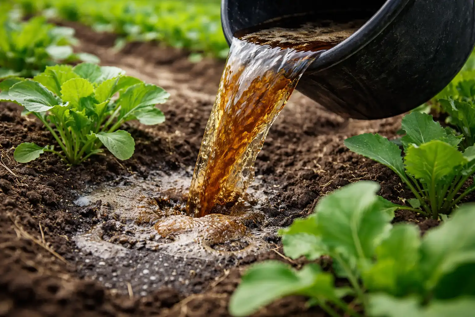 A legfontosabb árnyalat: soha ne öntsük az infúziót közvetlenül a gyökér alá, száraz talajra. Először bőségesen öntözzük meg az ágyást normál vízzel, és csak ezután juttassuk ki a trágyát a növény körüli barázdákba. Ez biztosítja, hogy a hatóanyagok ne károsítsák a gyökerek finom nedvszívó szőrszálait.