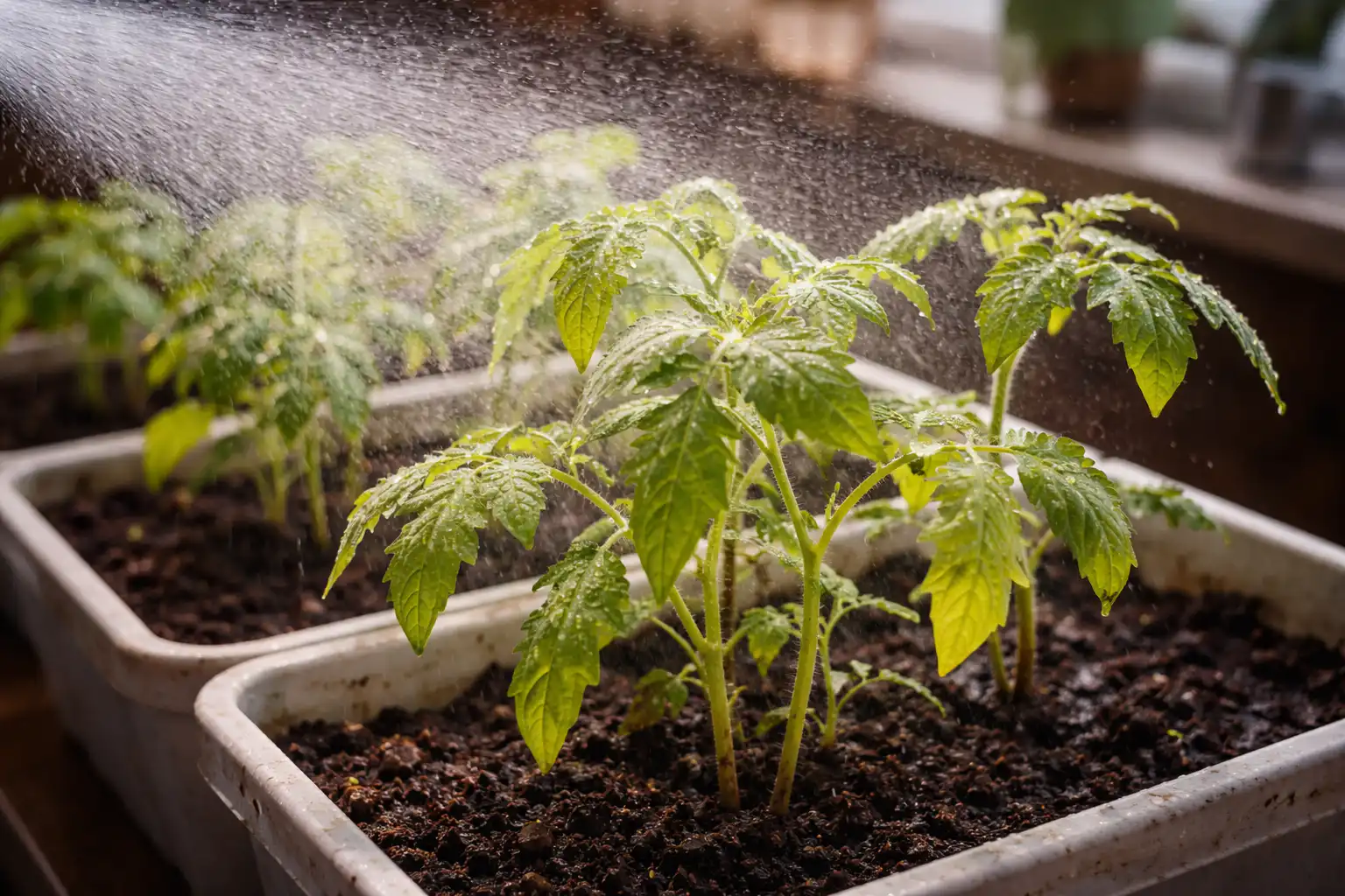 Egy titkos árnyalat: ha a palánta déli ablakon áll, az üveg alsó részét takarjuk le vékony gézzel. Ez 4-6 fokkal csökkenti a levelek hőmérsékletét anélkül, hogy a paradicsomot megfosztanánk a szükséges napsugárzás spektrumától.
